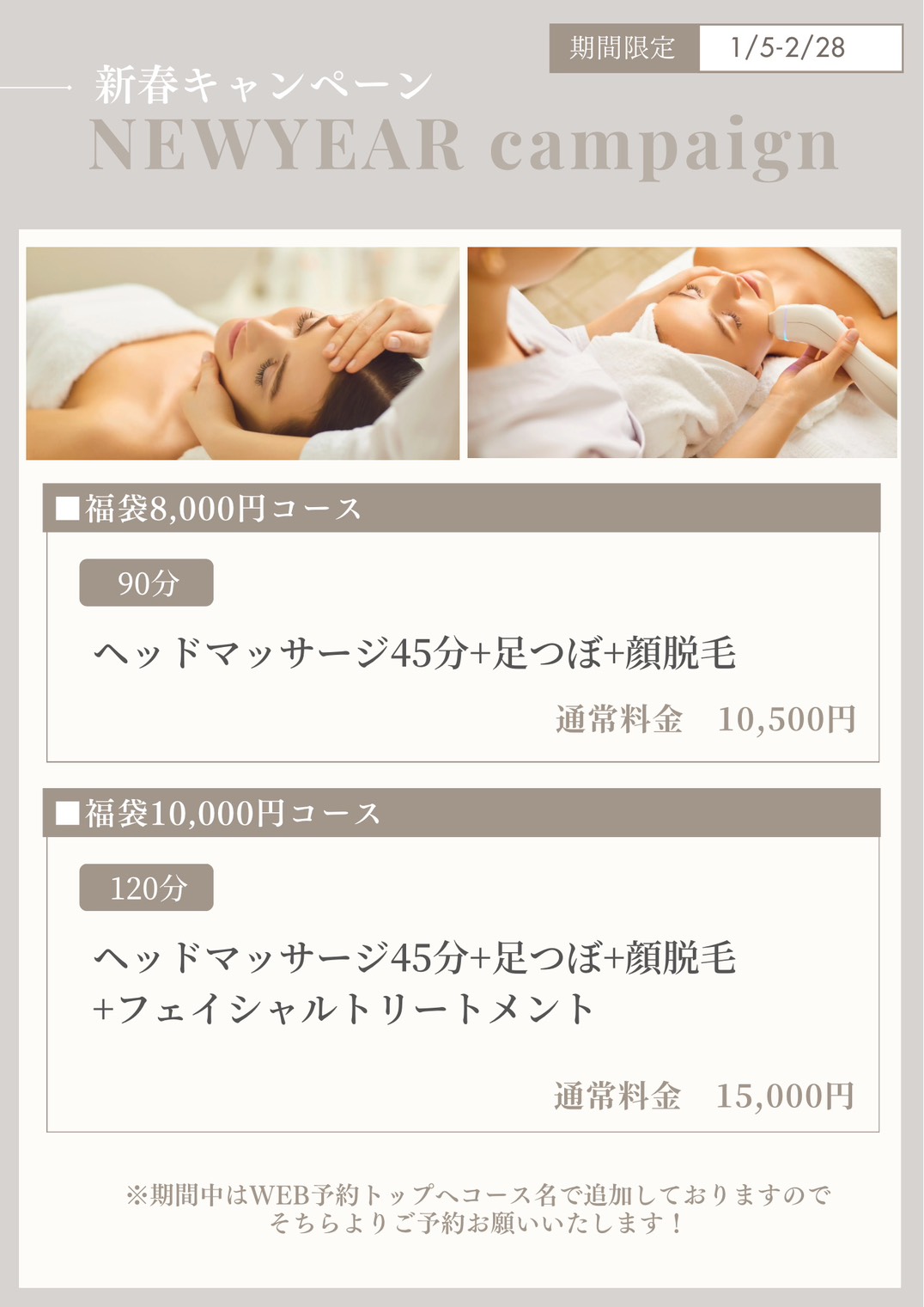 キャンペーン期間中は、WEB予約サイトに「キャンペーン専用コース名」を追加しております!